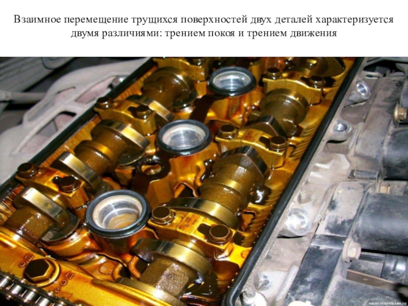 Слайд 39Взаимное перемещение трущихся поверхностей двух деталей характеризуется двумя различиями: трением