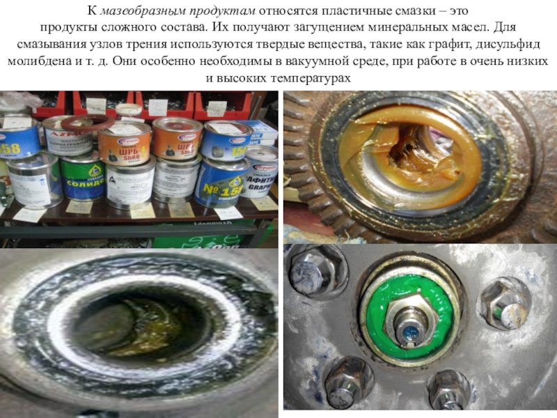 Слайд 33К мазеобразным продуктам относятся пластичные смазки – это