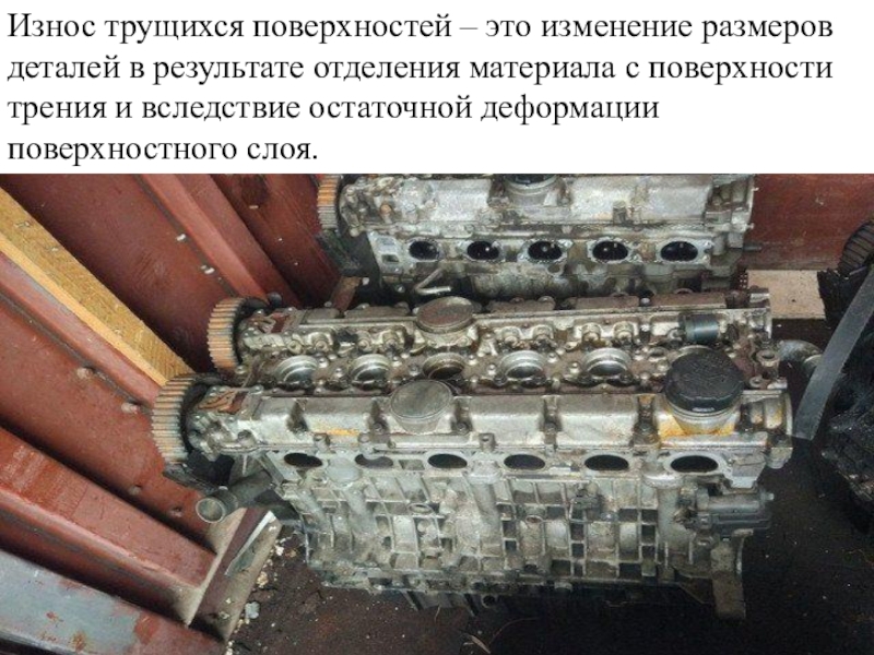 Слайд 58Износ трущихся поверхностей – это изменение размеров деталей в результате
