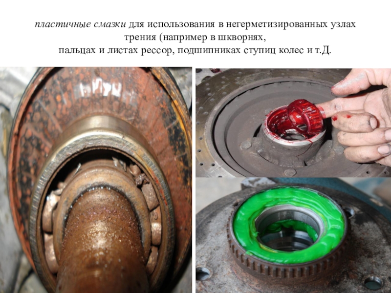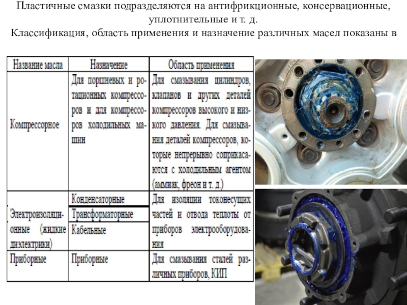 Слайд 35Пластичные смазки подразделяются на антифрикционные, консервационные, уплотнительные и т. д.
