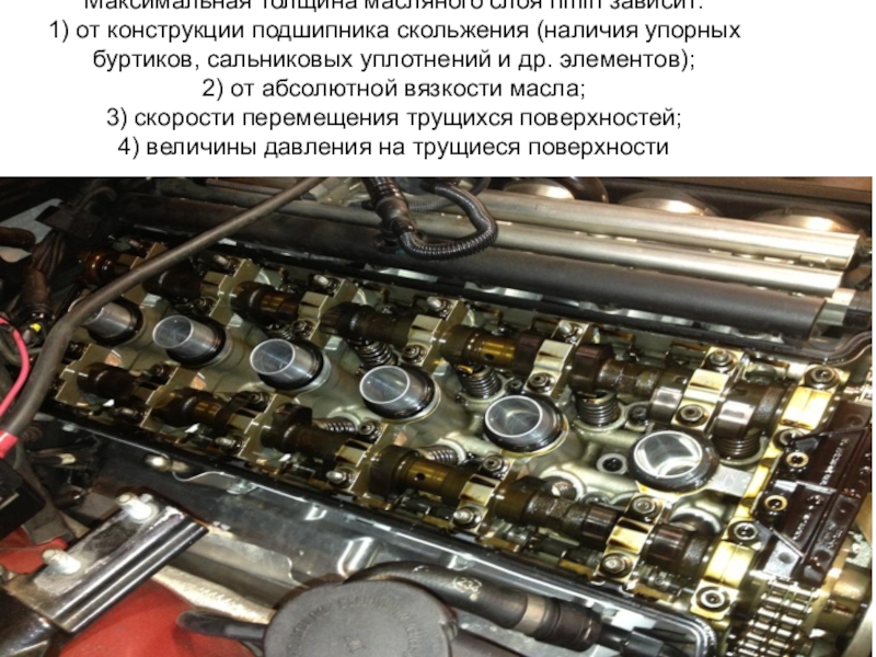 Слайд 57Максимальная толщина масляного слоя hmin зависит: