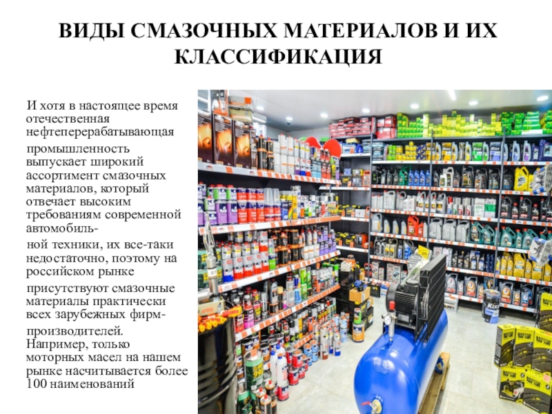промышленность выпускает широкий ассортимент смазочных материалов, который отвечает высоким