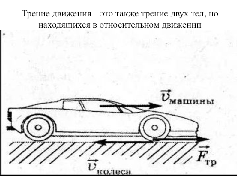 Слайд 41Трение движения – это также трение двух тел, но находящихся