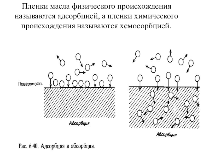 Слайд 51Пленки масла физического происхождения называются адсорбцией, а пленки химического происхождения