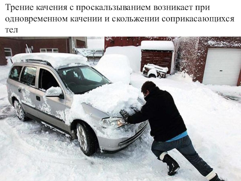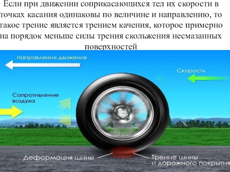 Слайд 48Трение качения с проскальзыванием возникает при одновременном качении и скольжении