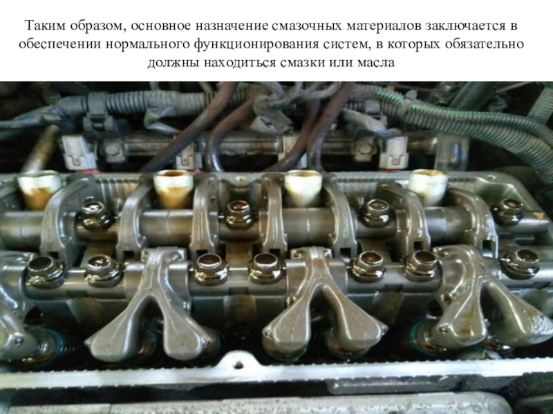 Слайд 14Таким образом, основное назначение смазочных материалов заключается в обеспечении нормального