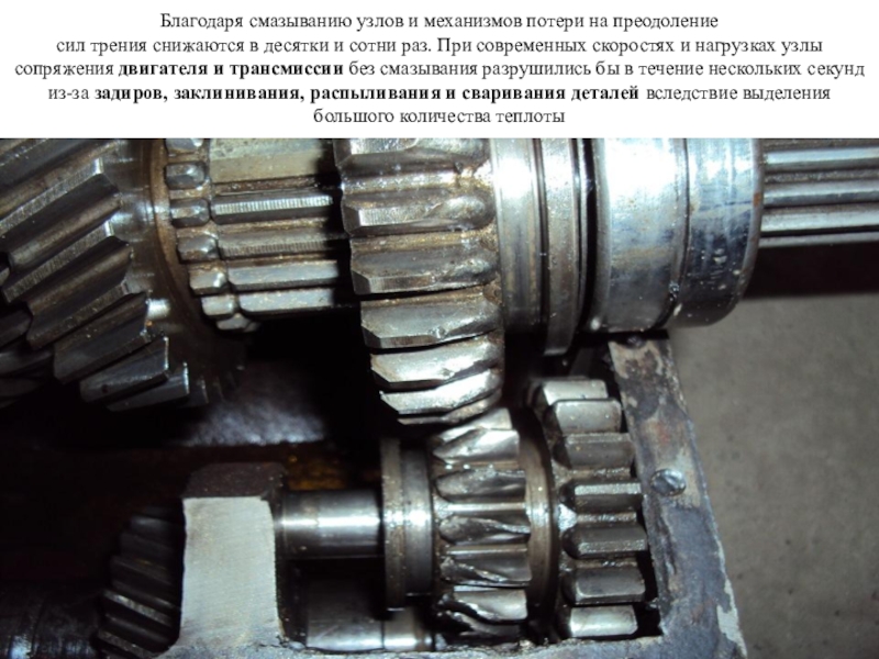 Слайд 5Благодаря смазыванию узлов и механизмов потери на преодоление