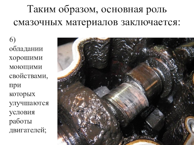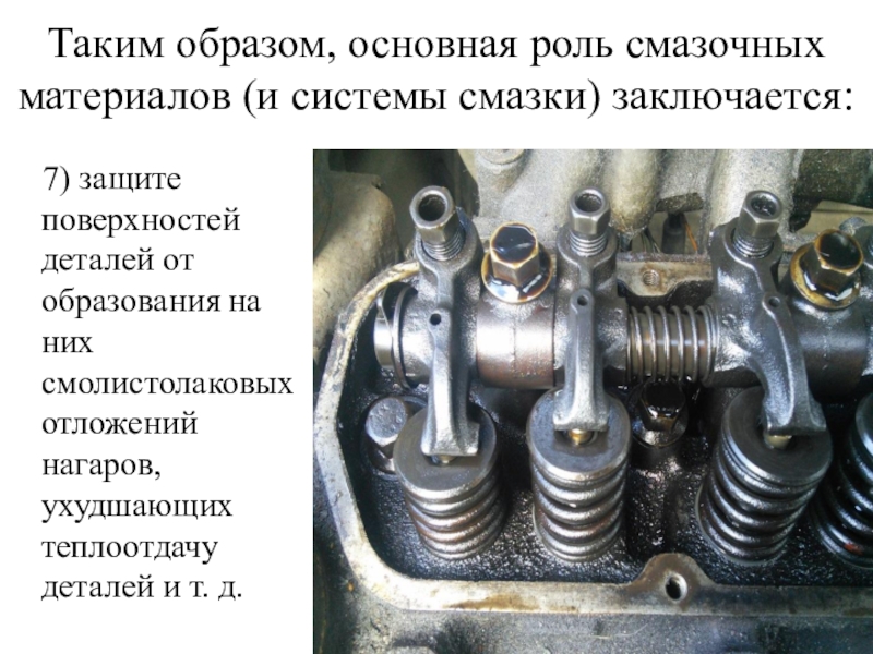 Слайд 7Таким образом, основная роль смазочных материалов (и системы смазки) заключается: