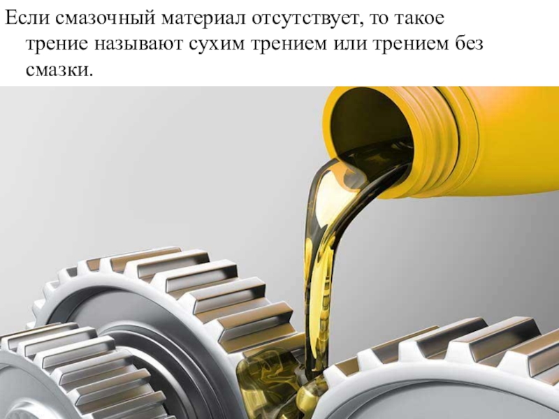 Слайд 42Если смазочный материал отсутствует, то такое трение называют сухим трением