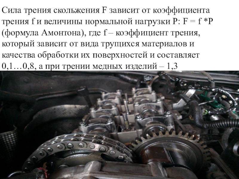 Слайд 45Сила трения скольжения F зависит от коэффициента трения f и