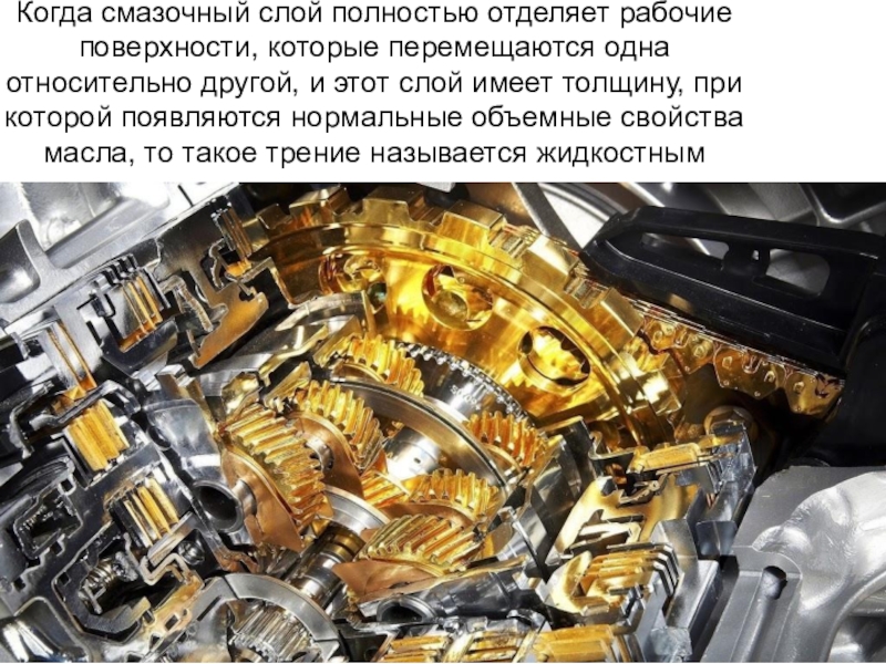 Слайд 53Когда смазочный слой полностью отделяет рабочие поверхности, которые перемещаются одна