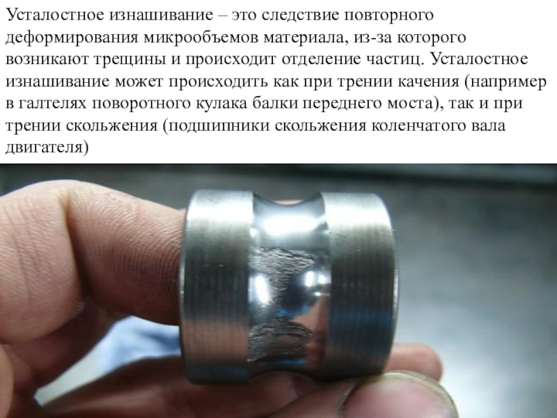 Слайд 61Усталостное изнашивание – это следствие повторного деформирования микрообъемов материала, из-за