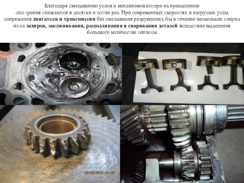 Слайд 6Благодаря смазыванию узлов и механизмов потери на преодоление