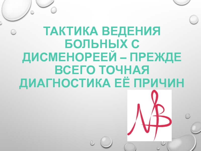 Слайд 37Тактика ведения больных с дисменореей – прежде всего точная диагностика