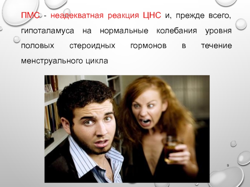 Слайд 9ПМС - неадекватная реакция ЦНС и, прежде всего, гипоталамуса на