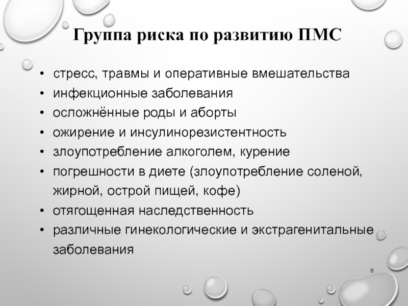 Группа риска по развитию ПМС