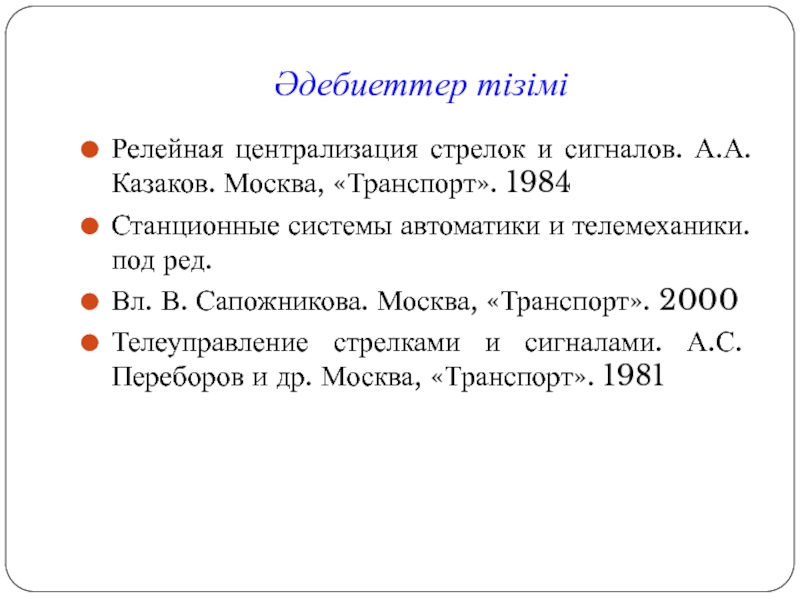 Релейная централизация стрелок и сигналов. А.А. Казаков. Москва, «Транспорт».