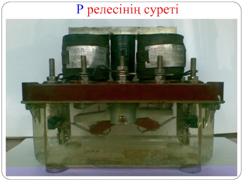 Слайд 9Р – полярлы типті реверсивті реле, автоауыстырып-қосқыштың түйіспелері арқылы бұрмалы