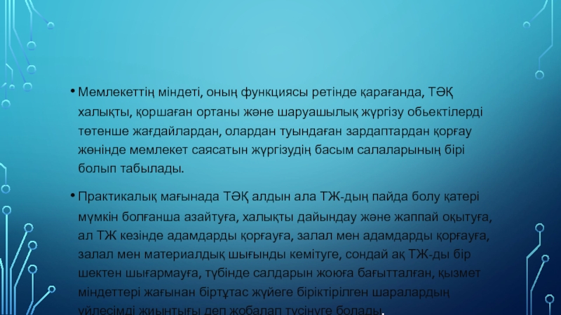 Слайд 3Мемлекеттің міндеті, оның функциясы ретінде қарағанда, ТӘҚ халықты, қоршаған ортаны