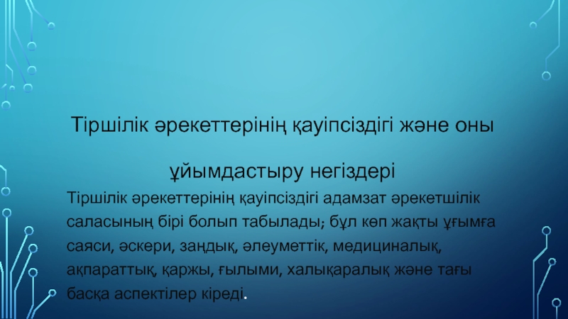 Слайд 2Тіршілік әрекеттерінің қауіпсіздігі және оны ұйымдастыру негіздері