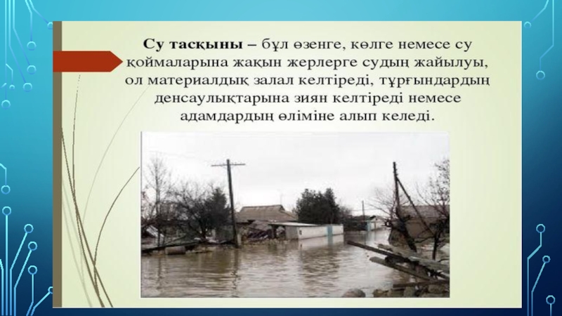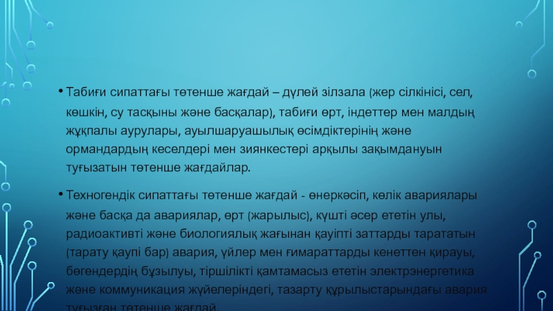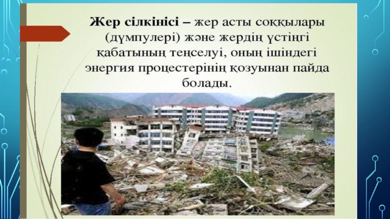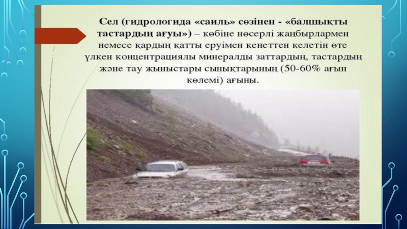 Слайд 6Табиғи сипаттағы төтенше жағдай – дүлей зілзала (жер сілкінісі, сел,