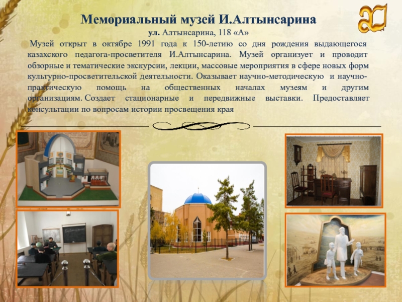 Слайд 24Музей А.Байтурсынова при КГУ.