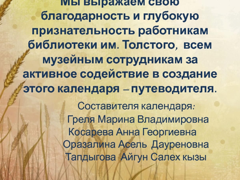 Слайд 3Мы выражаем свою благодарность и глубокую признательность работникам библиотеки им.