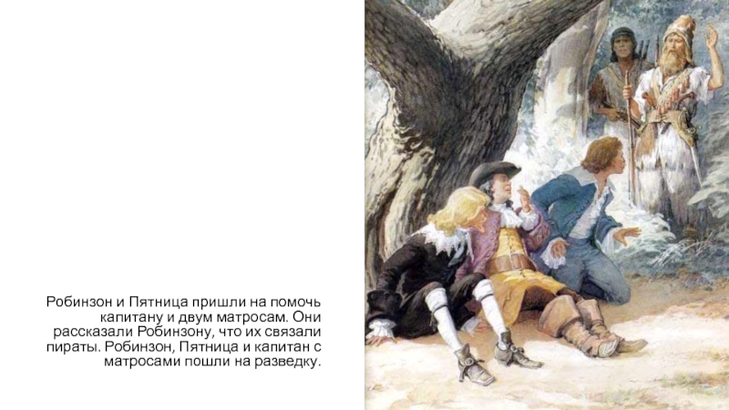 Слайд 17Робинзон и Пятница пришли на помочь капитану и двум матросам.