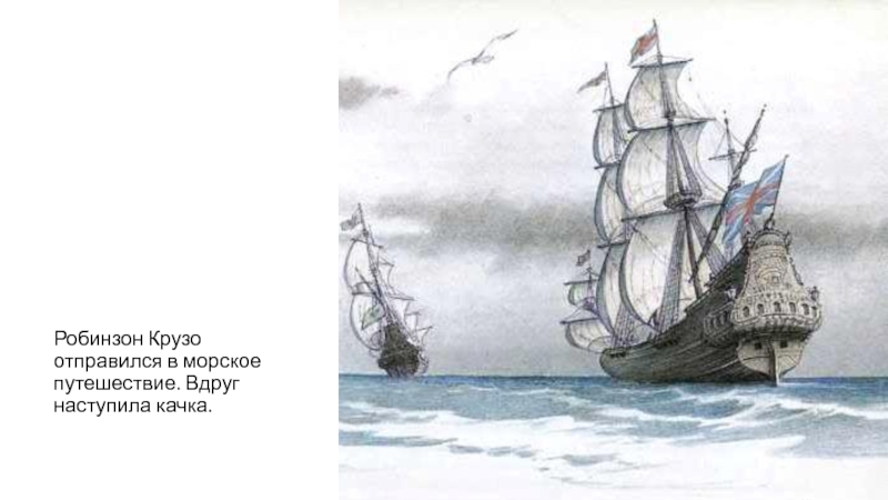 Слайд 3Робинзон Крузо отправился в морское путешествие. Вдруг наступила качка.
