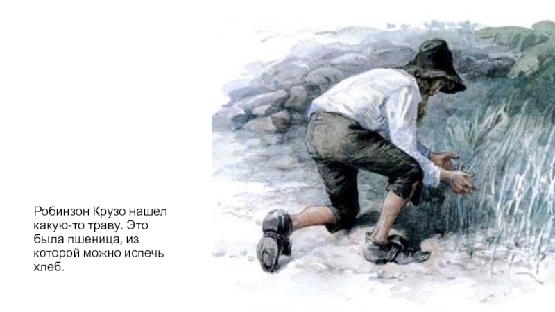 Слайд 8Робинзон Крузо нашел какую-то траву. Это была пшеница, из которой