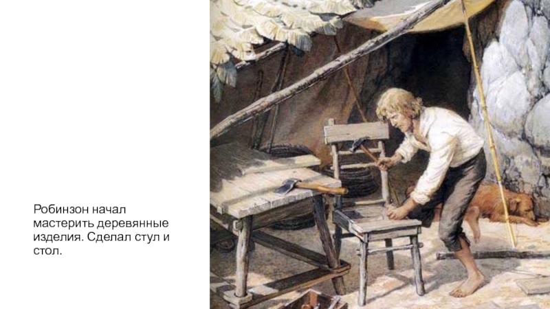 Слайд 6Робинзон начал мастерить деревянные изделия. Сделал стул и стол.
