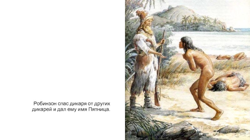 Слайд 13Робинзон спас дикаря от других дикарей и дал ему имя