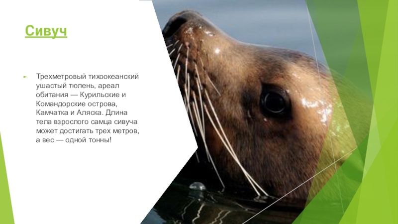 острова, Камчатка и Аляска. Длина тела взрослого самца сивуча может