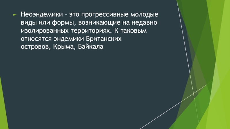 Неоэндемики – это прогрессивные молодые виды или формы, возникающие на недавно