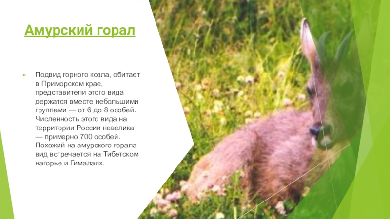 особей. Численность этого вида на территории России невелика — примерно 700 особей. Похожий на амурского горала вид встречается на Тибетском нагорье и Гималаях.