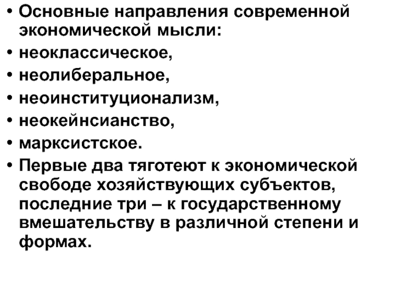 хозяйствующих субъектов, последние три – к государственному вмешательству в различной