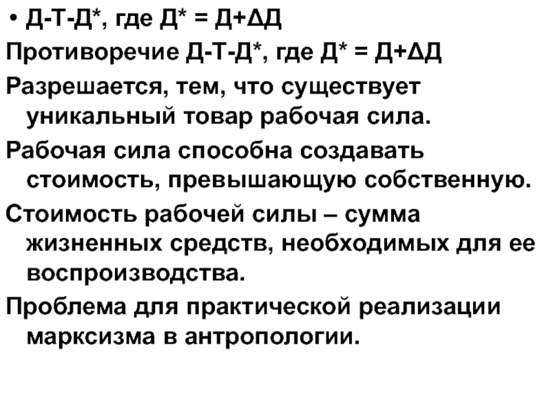 Противоречие Д-Т-Д*, где Д* = Д+ΔД