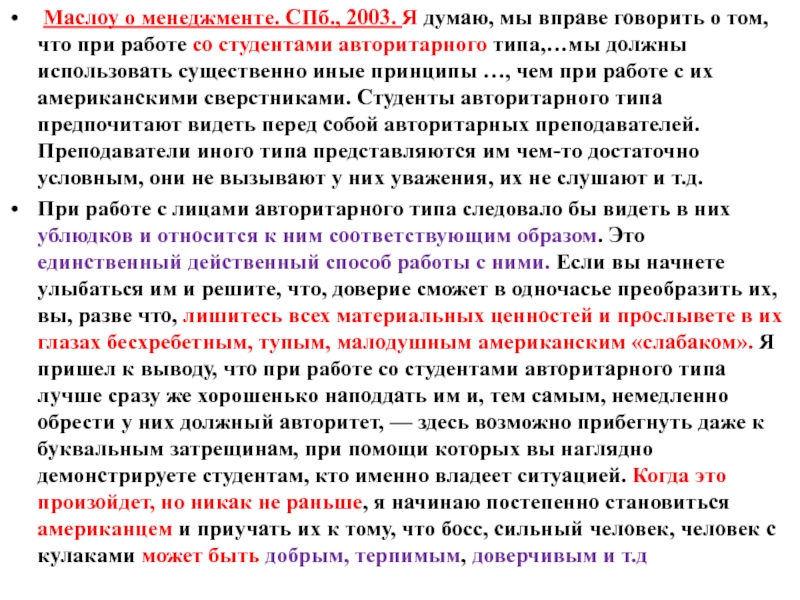 Слайд 4 Маслоу о менеджменте. СПб., 2003. Я думаю, мы вправе