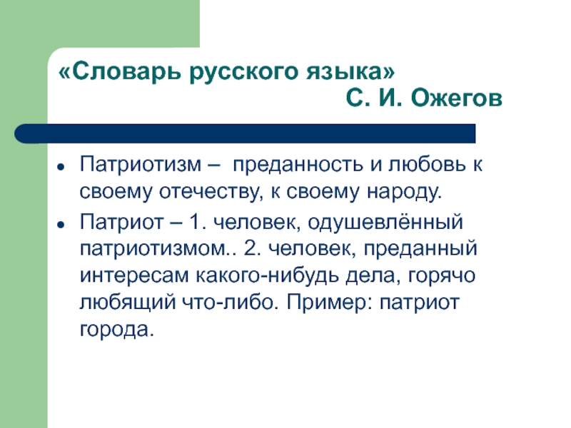 Патриотизм – преданность и любовь к своему отечеству, к своему народу.