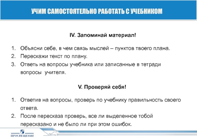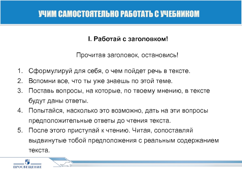 УЧИМ САМОСТОЯТЕЛЬНО РАБОТАТЬ С УЧЕБНИКОМ