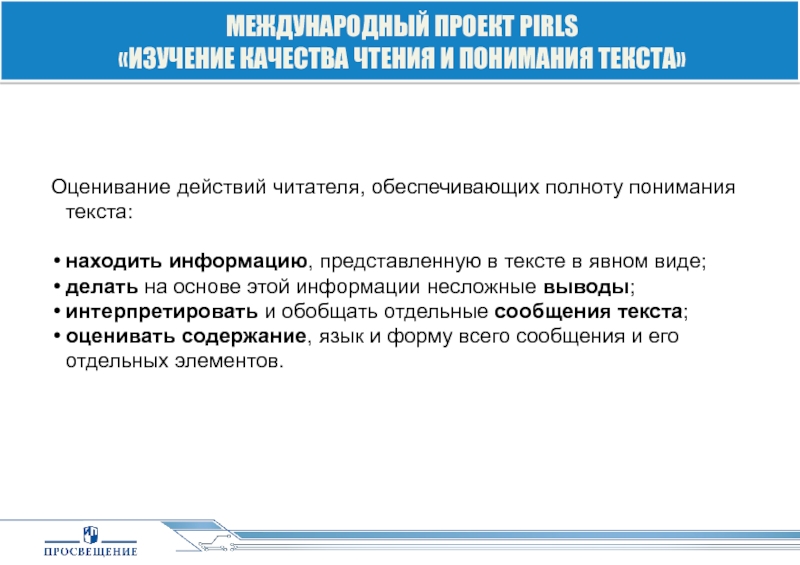 МЕЖДУНАРОДНЫЙ ПРОЕКТ PIRLS