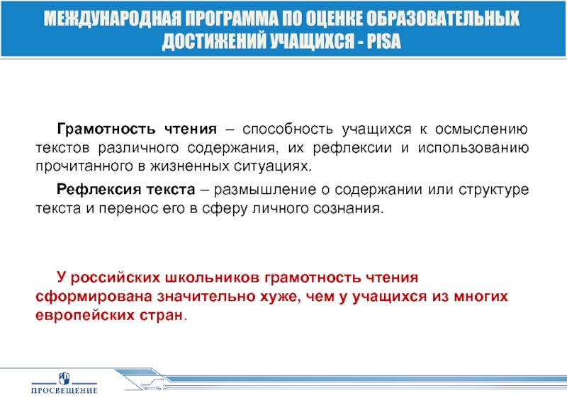 МЕЖДУНАРОДНАЯ ПРОГРАММА ПО ОЦЕНКЕ ОБРАЗОВАТЕЛЬНЫХ ДОСТИЖЕНИЙ УЧАЩИХСЯ - PISA