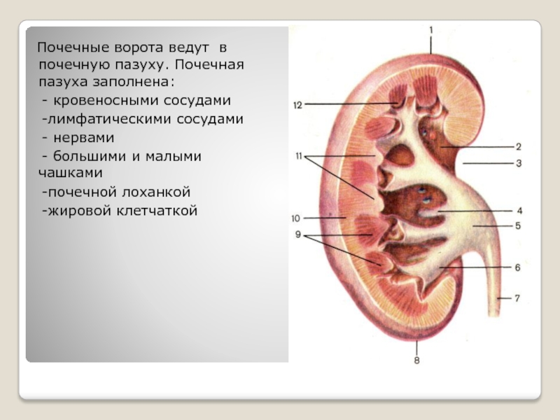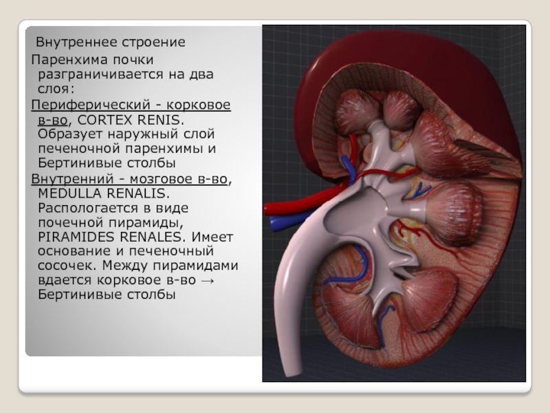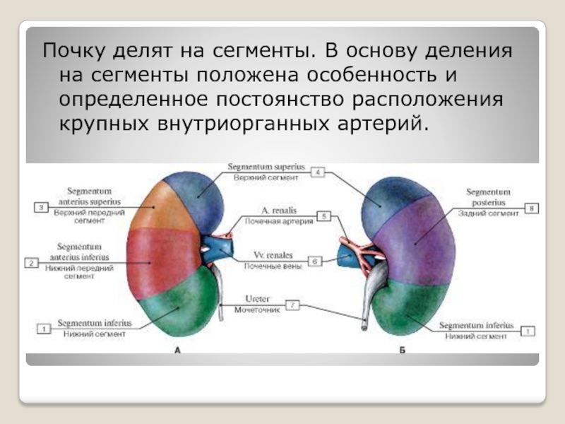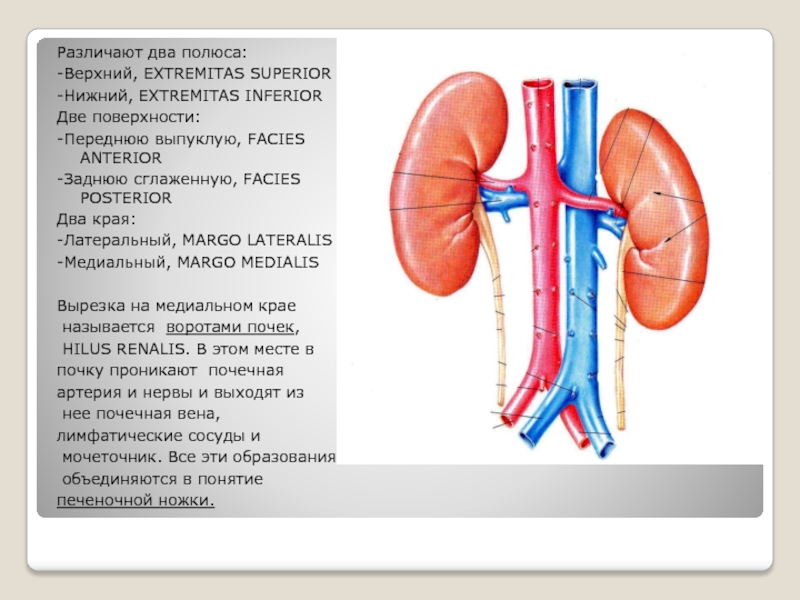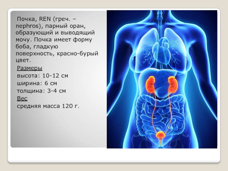 образующий и выводящий мочу. Почка имеет форму боба, гладкую поверхность,