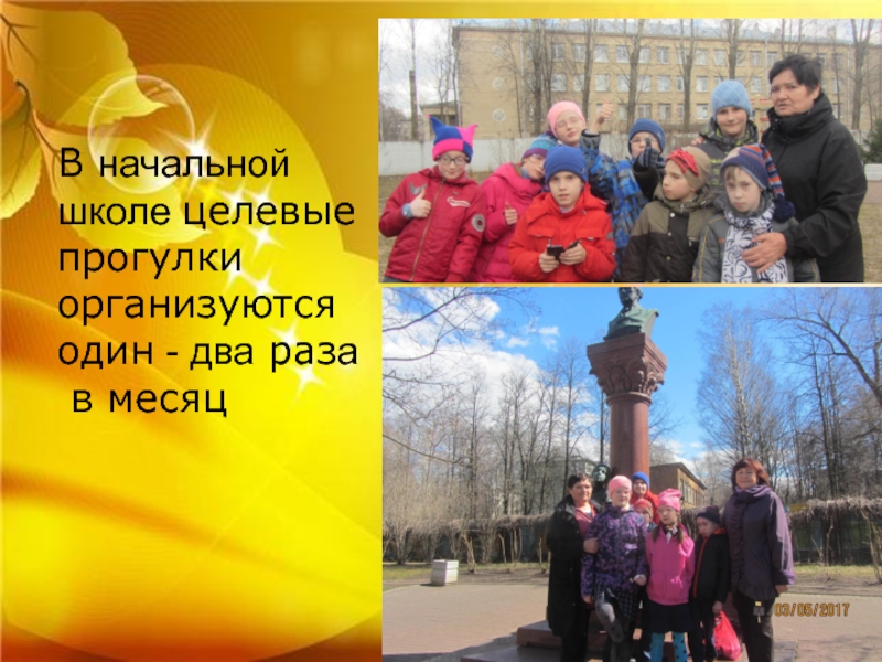 Слайд 4В начальной школе целевые прогулки организуются один - два раза
