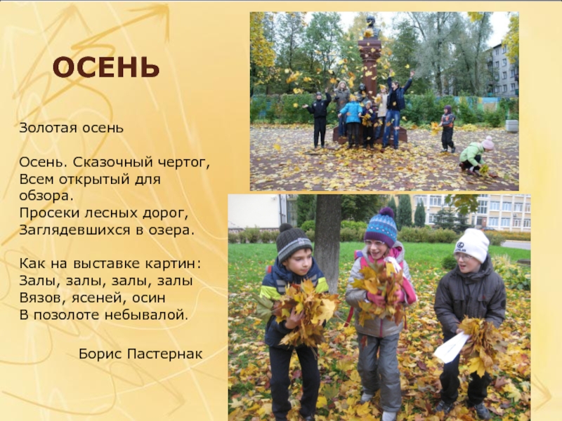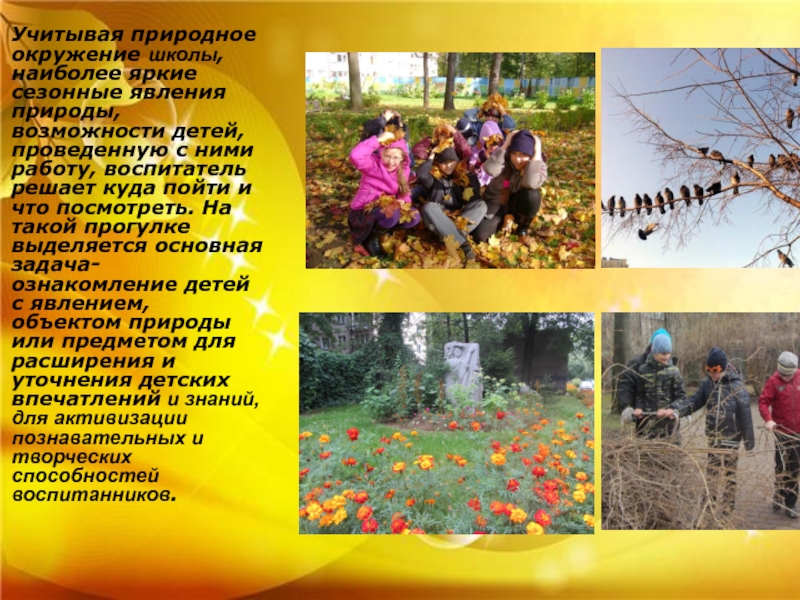 Слайд 3Учитывая природное окружение школы, наиболее яркие сезонные явления природы, возможности