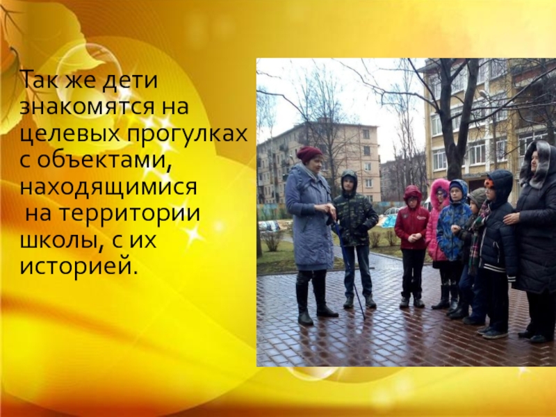 Слайд 6Так же дети знакомятся на целевых прогулках с объектами, находящимися