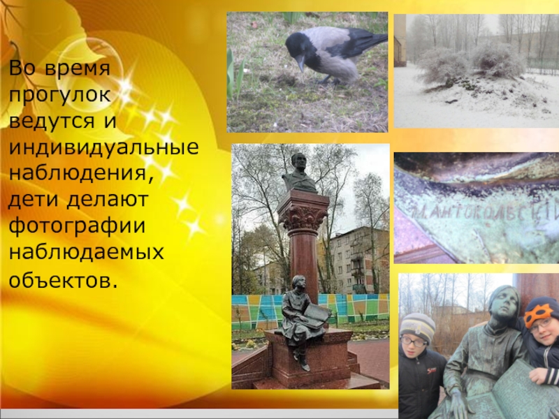 Слайд 17На целевых прогулках мы показываем детям предметы и явления природы