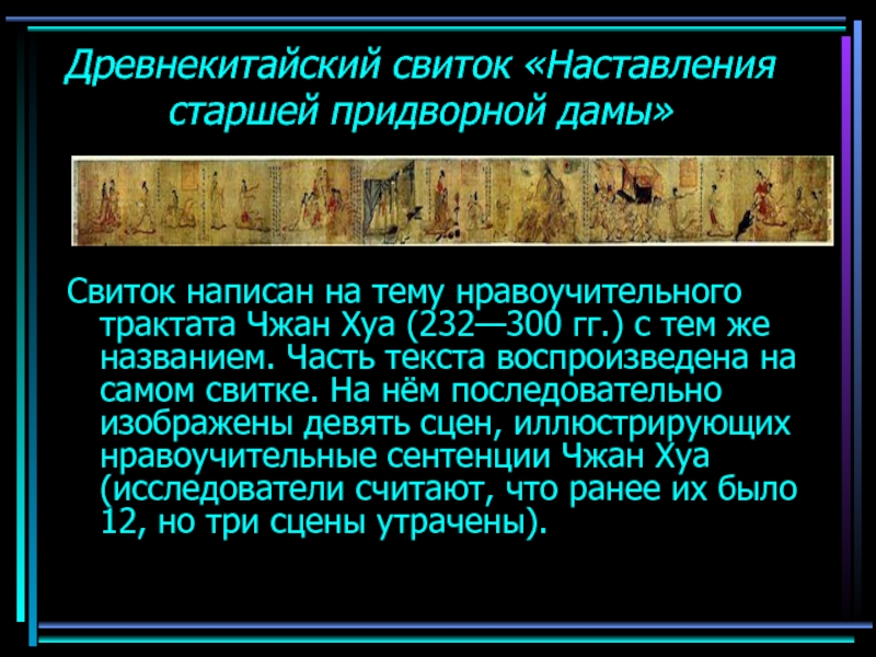 Слайд 21Древнекитайский свиток «Наставления старшей придворной дамы»