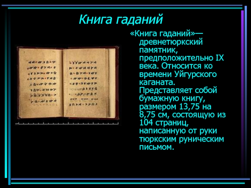 «Книга гаданий»— древнетюркский памятник, предположительно IX века. Относится ко