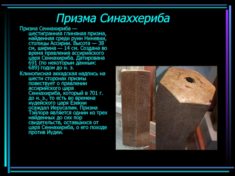 Призма Сеннахириба — шестигранная глиняная призма, найденная среди руин